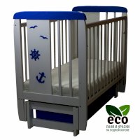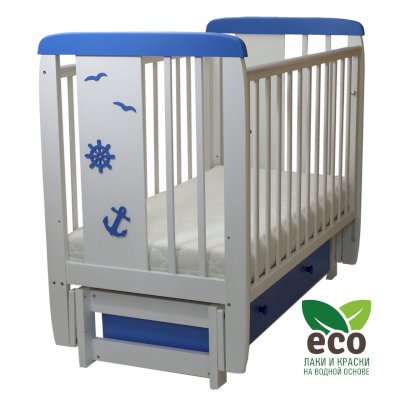 Кроватка декорирована деталями морской тематики.