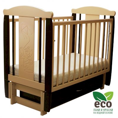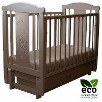 Кроватка декорирована фрезерным рисунком "Слоник". Уникальные фрезерные рисунки размером от 50 см на обеих спинках.