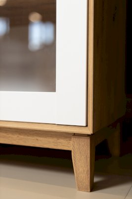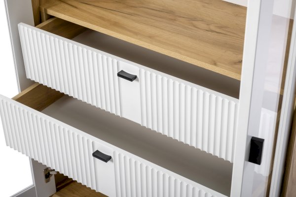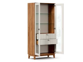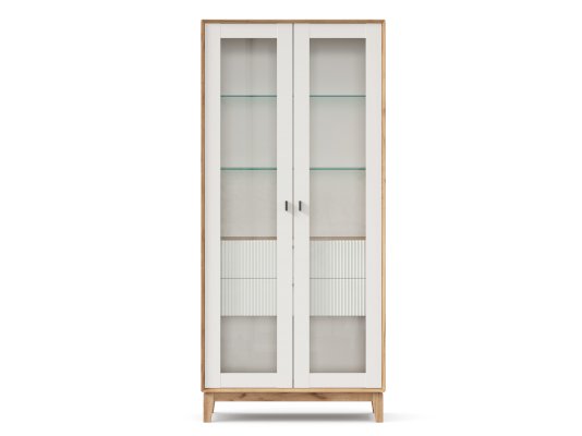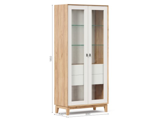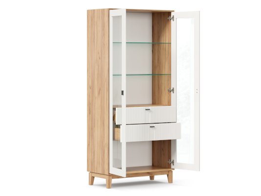 - За сборными распашными дверями со стеклом две стационарные горизонтальные перегородки и две съемные стеклополки.