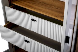 - Между стационарными перегородками два ящика друг под другом на направляющих нижнего крепления не полного выдвижения с доводчиком.